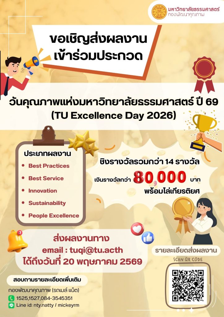 📩 ส่งผลงาน : tuqi@tu.ac.th